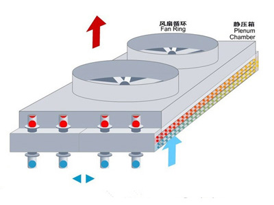 空氣冷卻器簡稱空冷器,以空氣作為冷卻劑,可用作冷卻器,也可用作冷凝器。空冷器主要由管束、支架和風(fēng)機(jī)組成。空氣冷卻器熱流體在管內(nèi)流動(dòng),空氣在管束外吹過。由于換熱所需的通風(fēng)量很大,而風(fēng)壓不高,故多采用軸流式通風(fēng)機(jī)。