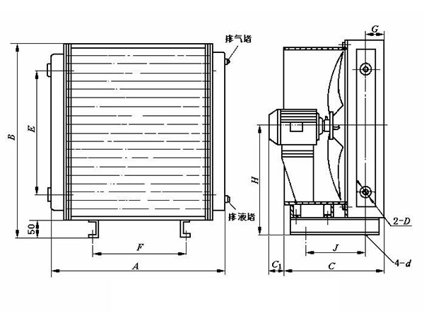 3、構架它由鋼結構框架和風筒構成,通過它支撐管束和風機,并使空氣按一定的方向流動。