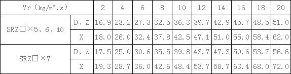 表1、SRZ空氣熱交換器(散熱器)熱媒為蒸汽時,在不同空氣重量流速下的傳熱系數(shù)K(kcal/m2.h.℃)